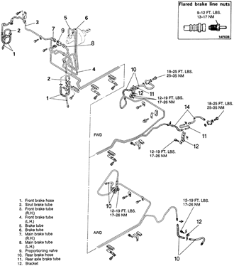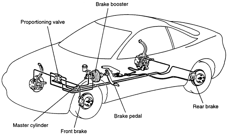 | Fig. 3: Brake line routing — early model vehicles without ABS |