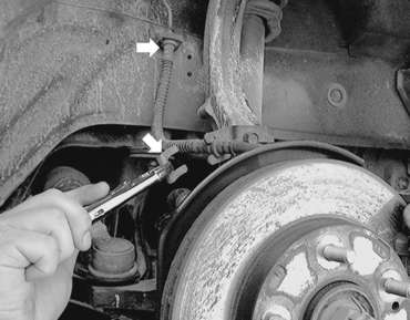 | Fig. 7: If necessary, unfasten the metal brake line