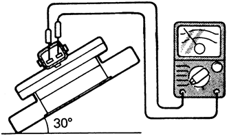 | Fig. 2: G–sensor inspection — checking for no continuity of sensor while inclined at angle greater than 30 degrees |
