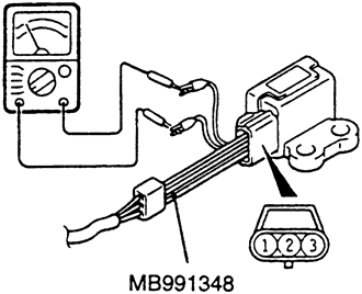 | Fig. 3: Connect a test harness set between the sensor and an ohmmeter |