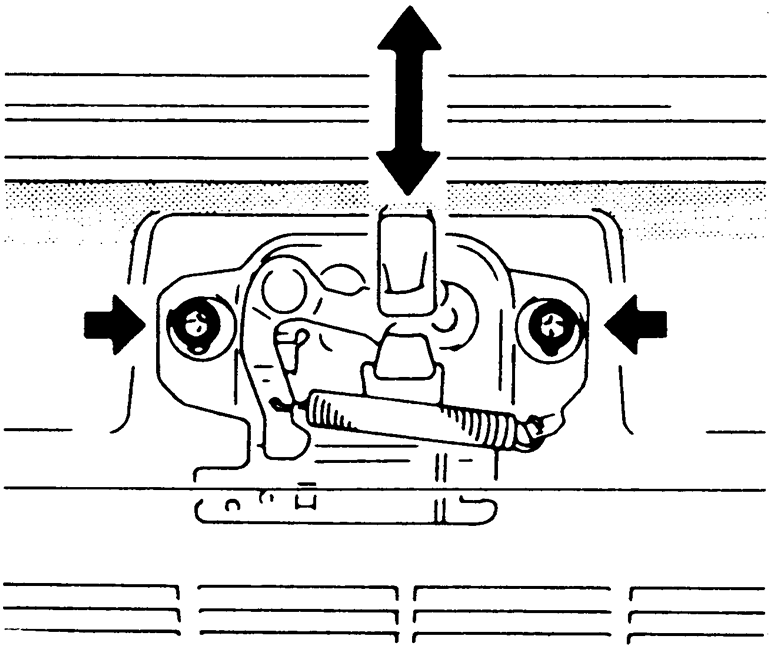 | Fig. 2: To adjust the distance between the liftgate striker and the liftgate latch, loosen the latch mounting bolts |
