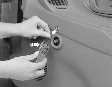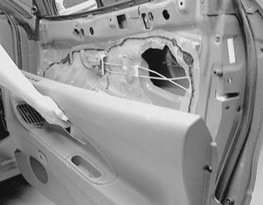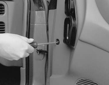 | Fig. 8: If necessary, remove any door panel retaining