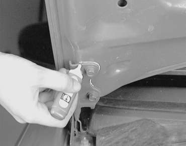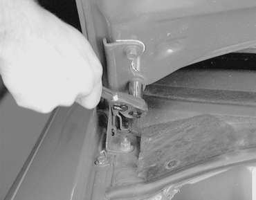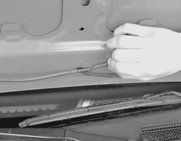 | Fig. 3: With an assistant supporting the hood, unfasten