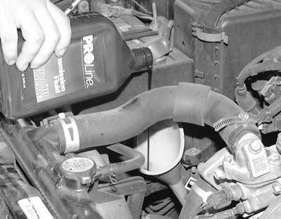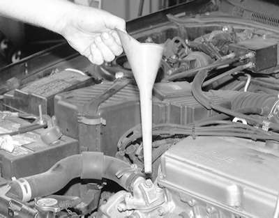 | Fig. 7: Pour the fluid directly into the funnel, periodically