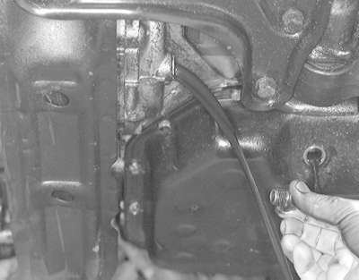 | Fig. 2: Carefully pull the transaxle drain plug out