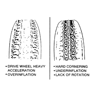 | Fig. 3: Examples of inflation-related tire wear patterns |