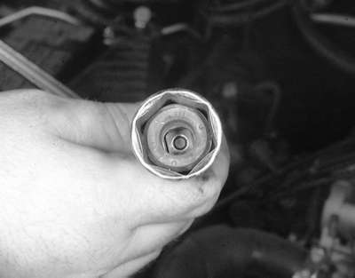 | Fig. 4: Using the appropriate sized spark plug socket,