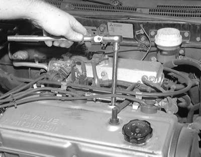 necessary extensions and drive tools, loosen the spark plug . . .