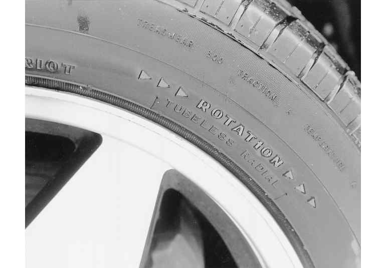 | Fig. 2: Unidirectional tires are identifiable by sidewall arrows and/or the word "rotation" |