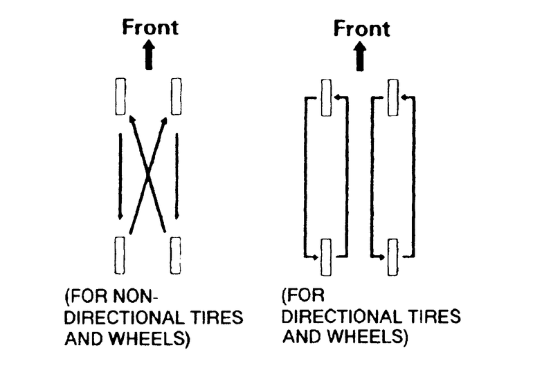 Some styled or "mag" wheels may have different offsets front to rear. In these cases, the rear wheels must not be used up front and vice-versa. Furthermore, if these wheels are equipped with unidirectional tires, they cannot be rotated unless the tire is remounted for the proper direction of rotation.
