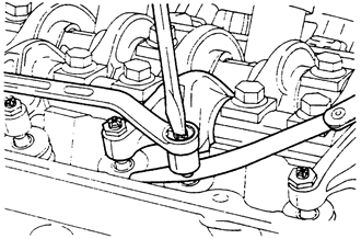 - If the valve clearance is out of specification, loosen the rocker arm locknut