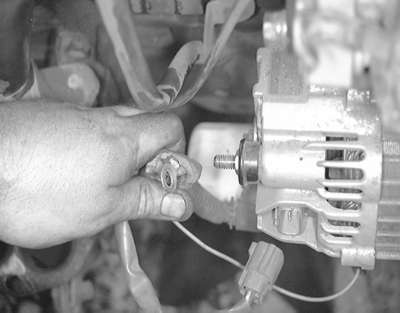 | Fig. 8: . . . then remove the alternator from the vehicle
