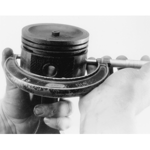 | Fig. 2: Measure the piston's outer diameter, perpendicular to the wrist pin, with a micrometer |
