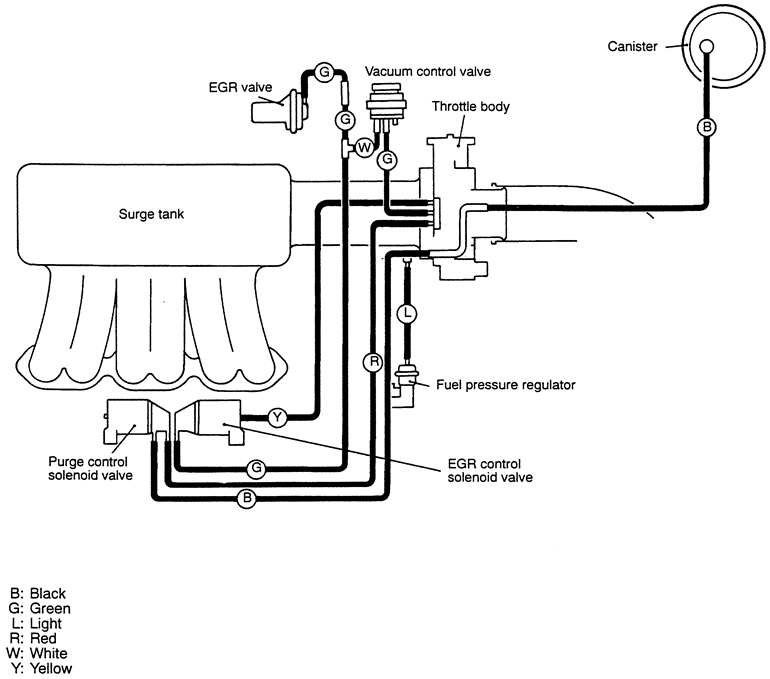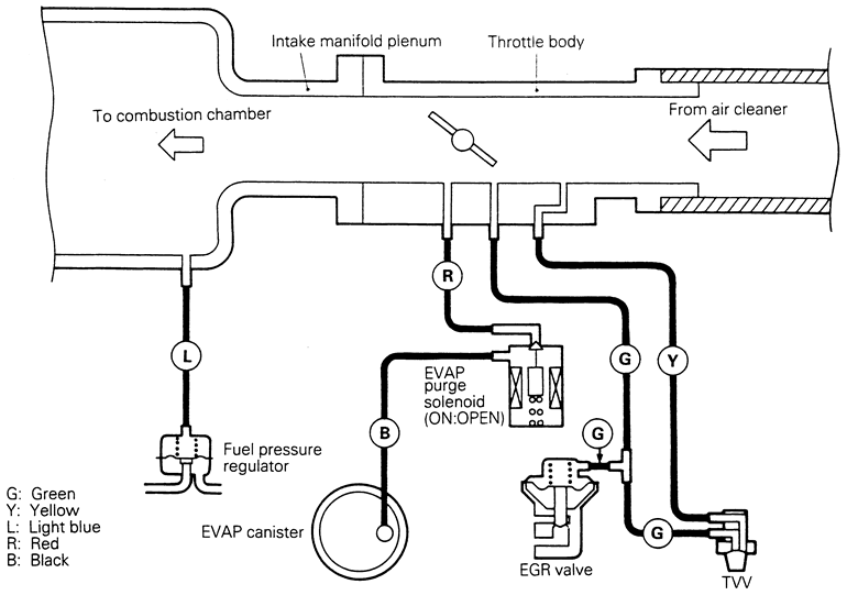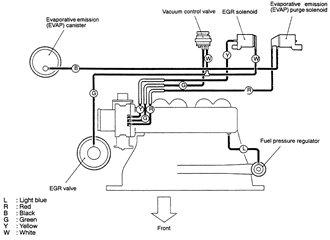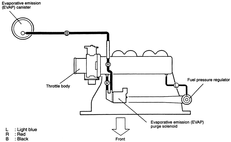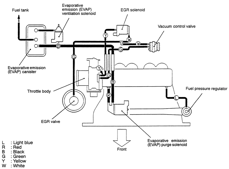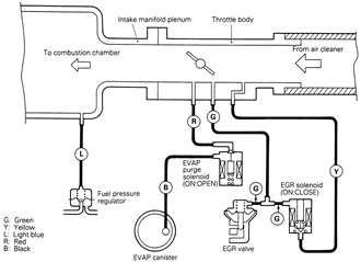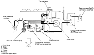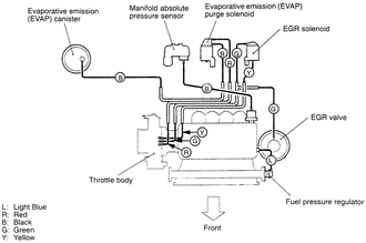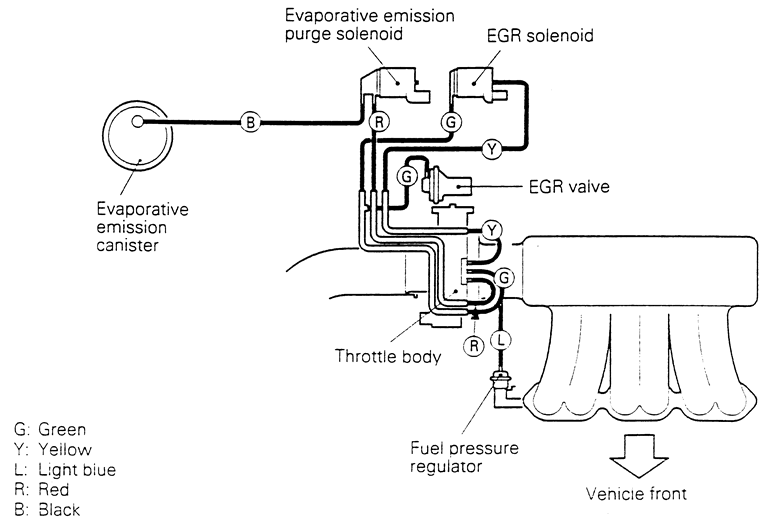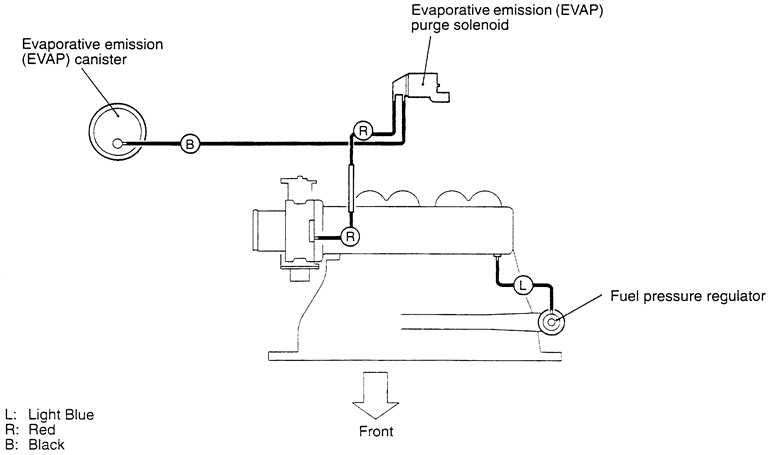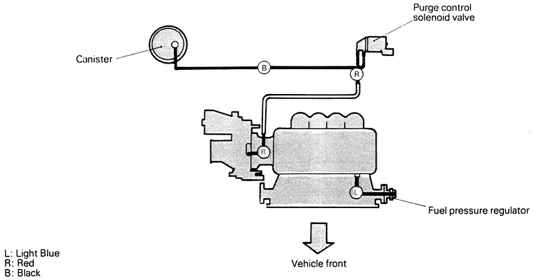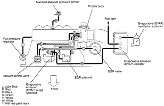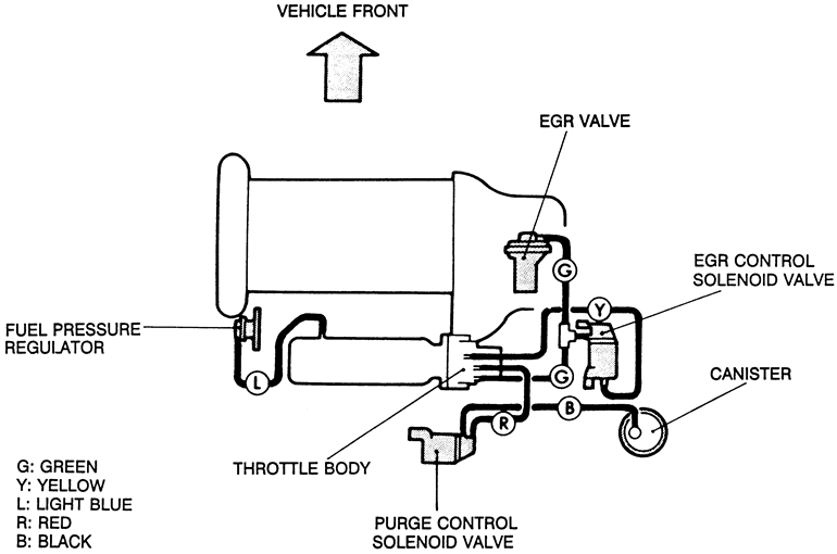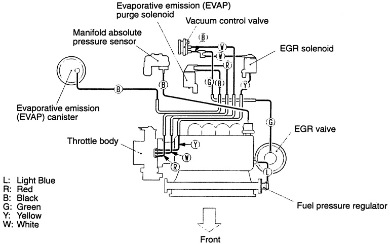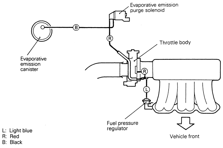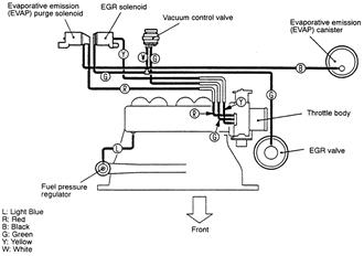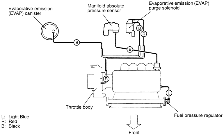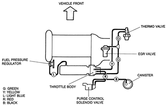 | Emission control system vacuum hose routing — 1999–00 2.4L engine |