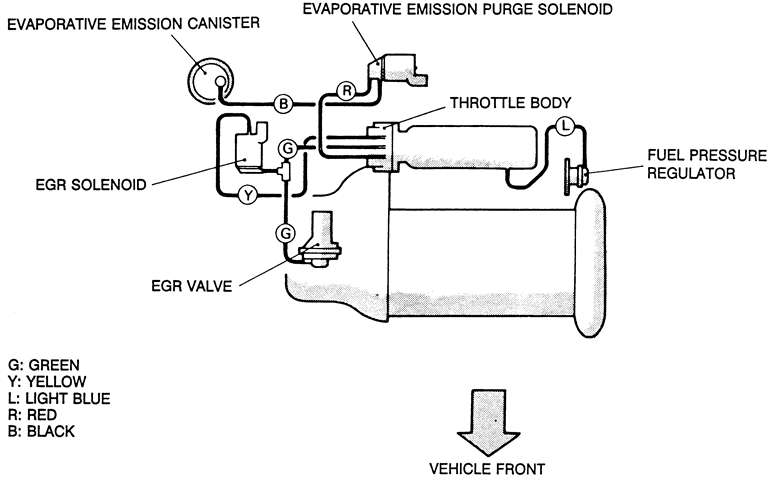 | Emission control system vacuum hose routing — 1990–92 1.5L engine, Federal emissions |