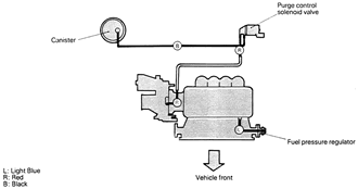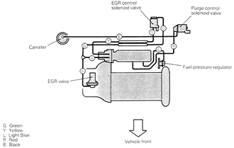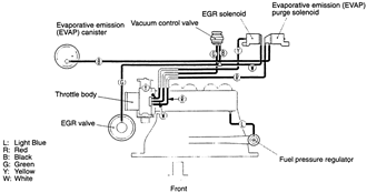 | Emission control system vacuum hose routing — 1995–96 1.8L engine, California emissions |