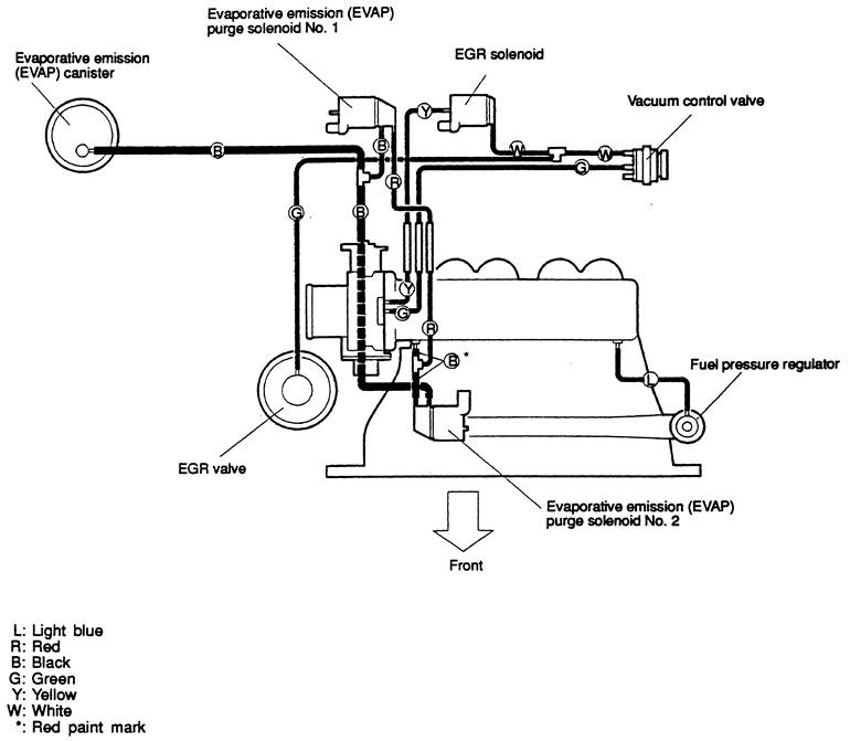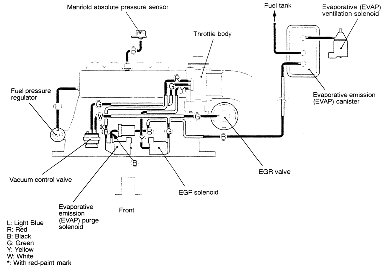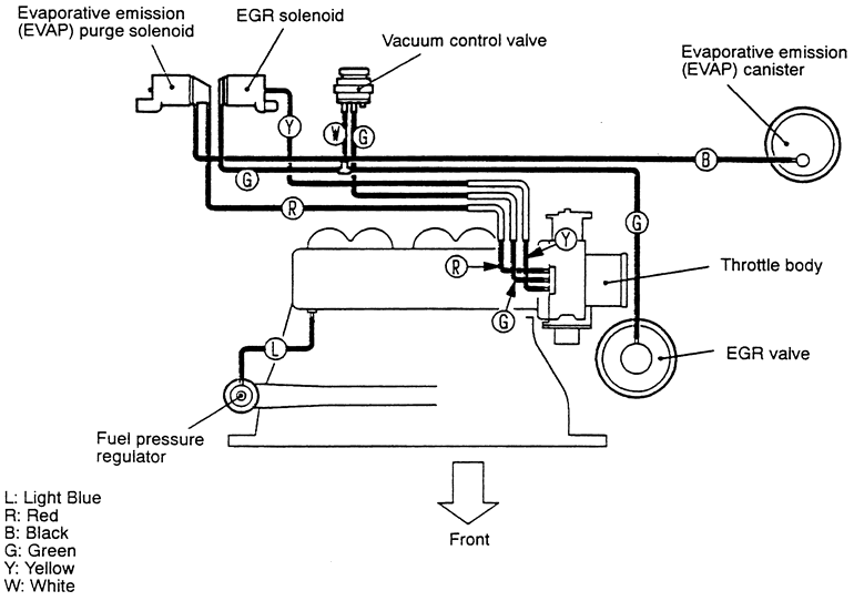| Emission control system vacuum hose routing — 1994–96 2.4L engine, Federal emissions |