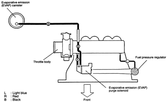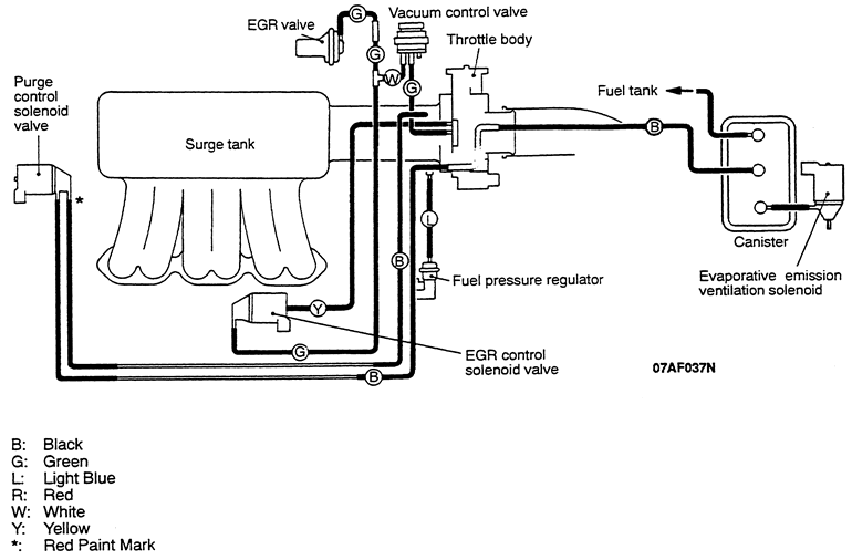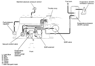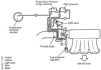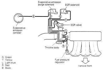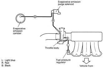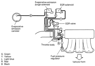 | Emission control system vacuum hose routing — 1998 2.4L engine, California emissions |