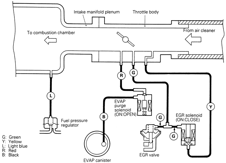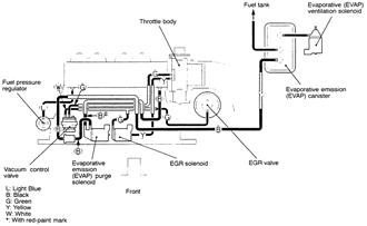 | Emission control system vacuum hose routing — 1994–96 2.4L engine, California emissions |