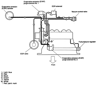 | Emission control system vacuum hose routing — 1993–96 3.0L engines (SOHC and DOHC) w/out traction control, California emissions |