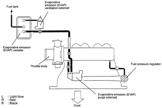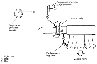 | Emission control system vacuum hose routing — 1998 2.4L engine, Federal emissions |