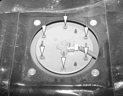 here), is held by six retaining nuts; remove them and lift the pump out