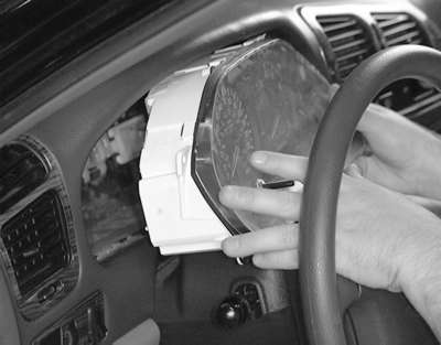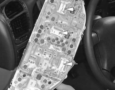 NOTE: If the speedometer cable adapter requires service, disconnect the cable at the transaxle end. Pull the cable slightly toward the vehicle interior, release the lock by turning the adapter to the right or left and remove the adapter.