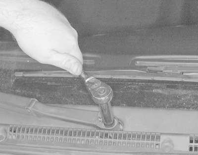 loosen the windshield wiper arm retaining nut