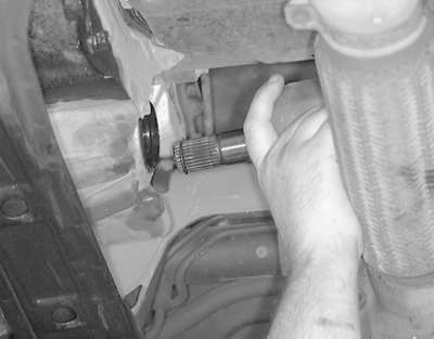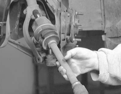 by setting up a puller on the outside wheel hub and pushing the halfshaft