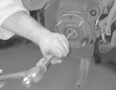 from the front hub. After pressing the outer shaft, insert a prybar between