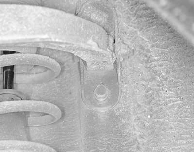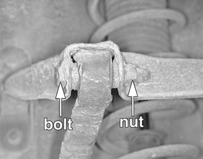 | Fig. 1: Remove the through-bolt securing the upper arm