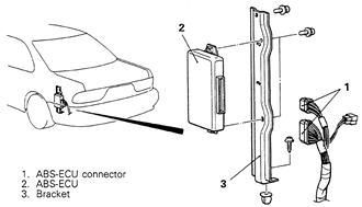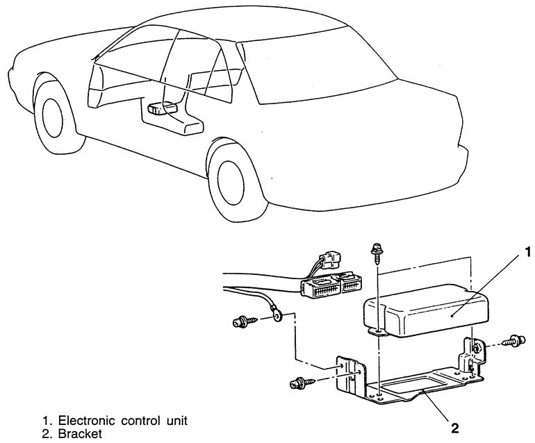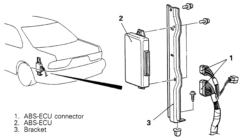 Fig. 2: Anti-lock control unit mounting — Galant