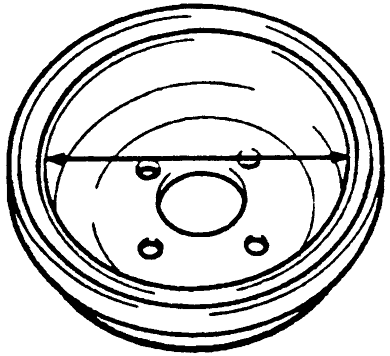 With the brake drum removed from the vehicle, measure the inside diameter of the hub and drum at two or more locations.