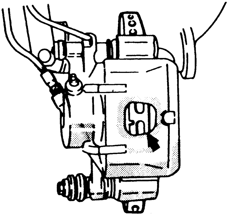 | Fig. 1: Inspect front disc pad thickness through caliper body check port |