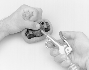 | Fig. 2: Compressed air can be used to remove the pistons and seals |