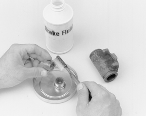 | Fig. 7: Lubricate the cup seals with brake fluid |