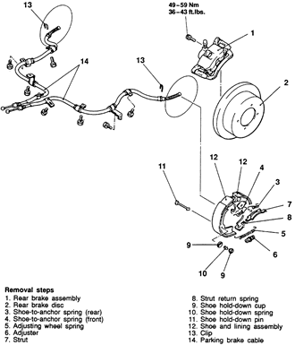 - Remove the parking brake shoes. Refer to the procedure in this section.