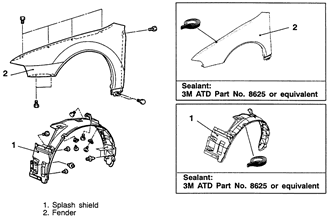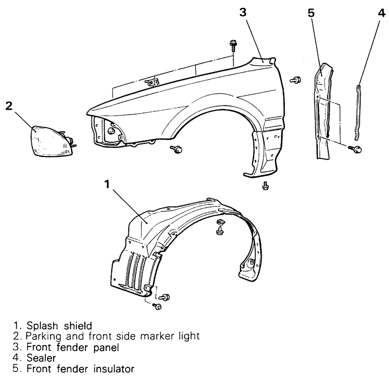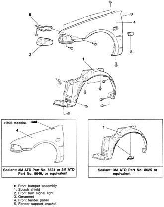| Fig. 3: Fender mounting — 1990–93 Galant |