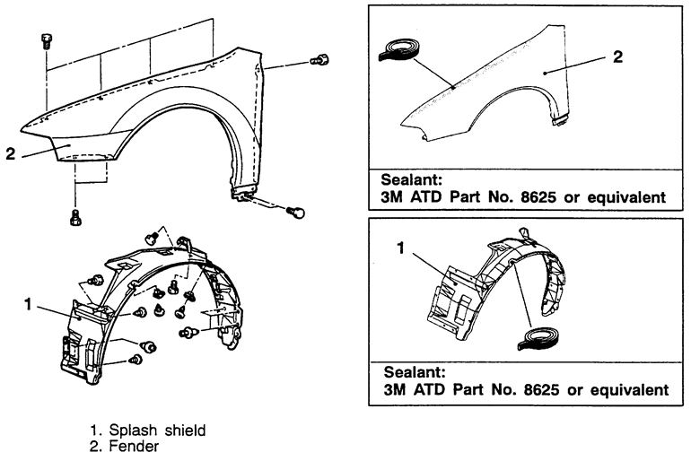 | Fig. 1: Fender mounting — 1992–96 Diamante |