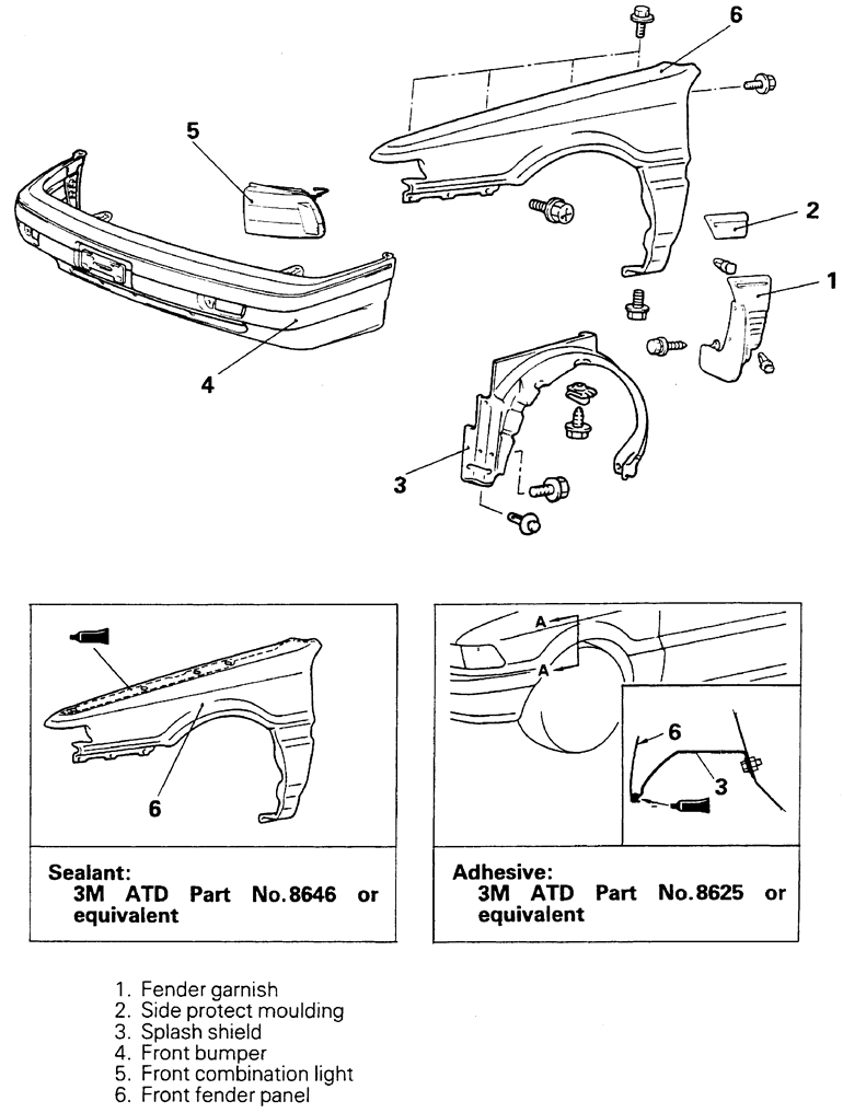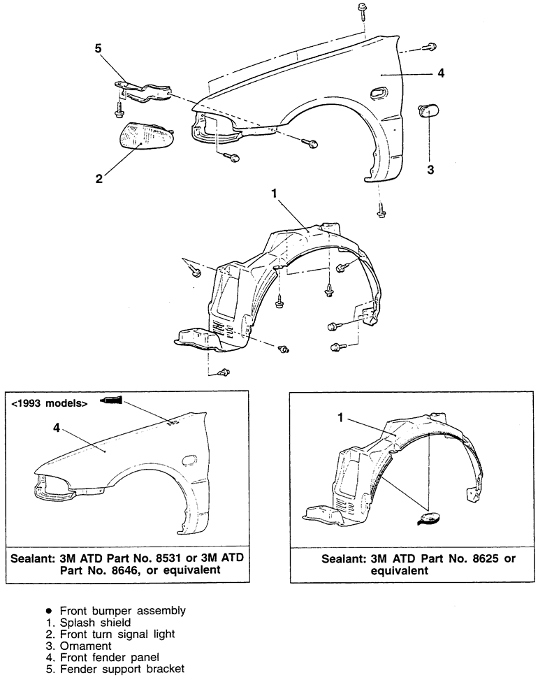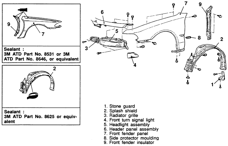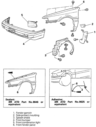| Fig. 6: Fender mounting — 1990–92 Mirage |