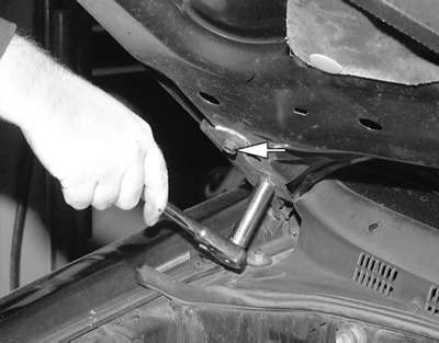 | Fig. 4: With an assistant supporting the hood, remove