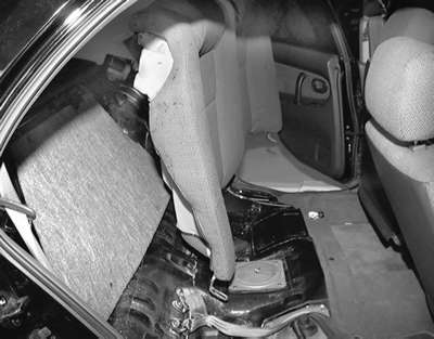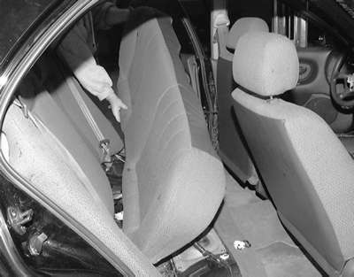 | Fig. 4: Remove the seat back retaining bolts on the right