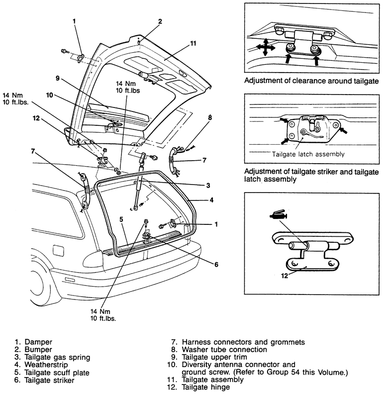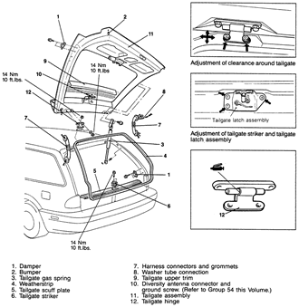 Fig. 1: Tailgate assembly mounting — Diamante Wagon