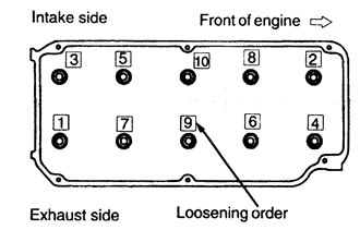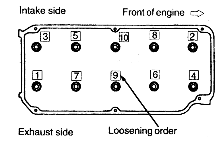 | Fig. 7: Cylinder head bolt loosening sequence — 1.8L engine |