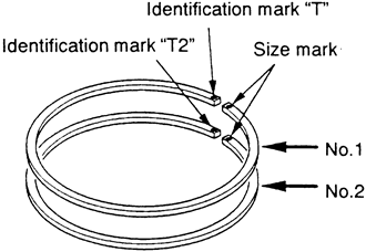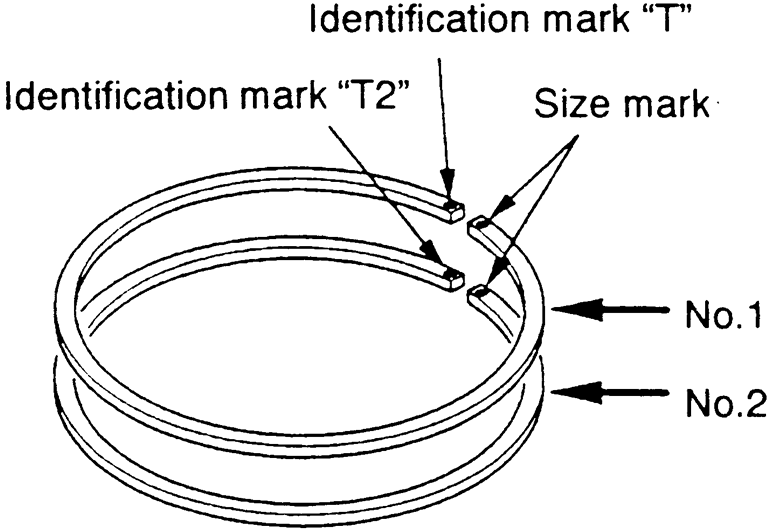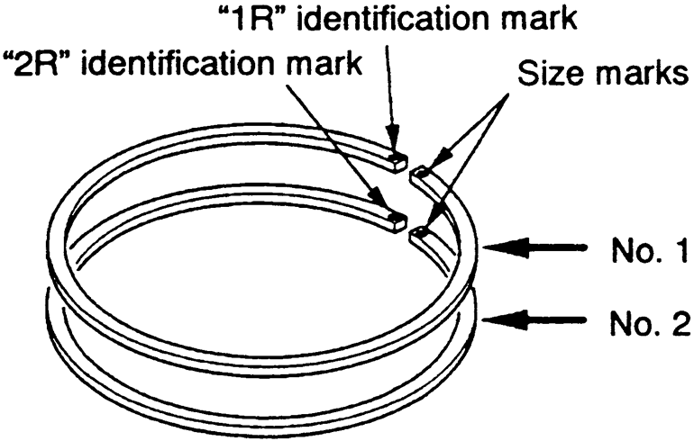 | Fig. 2: 1.5L and 2.4L engines — compression ring identification mark locations |