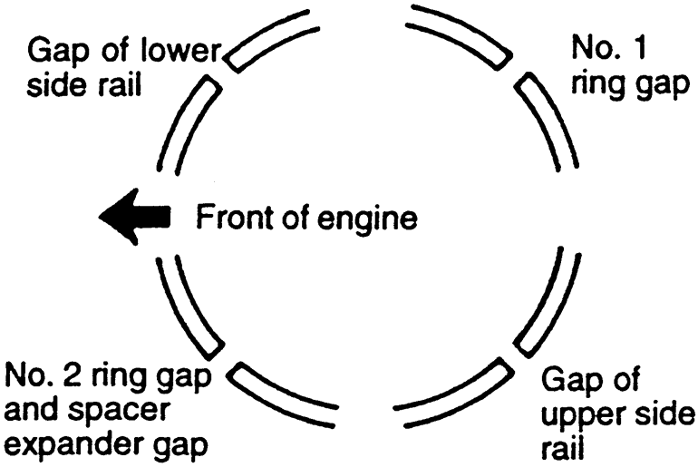 | Fig. 5: Except 2.0L (420A) engines — piston ring end-gap spacing |