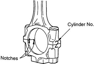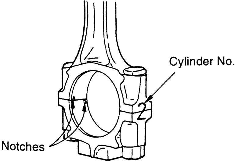 | Fig. 1: Before removing the caps from the connecting rods, be sure to matchmark them as shown |
