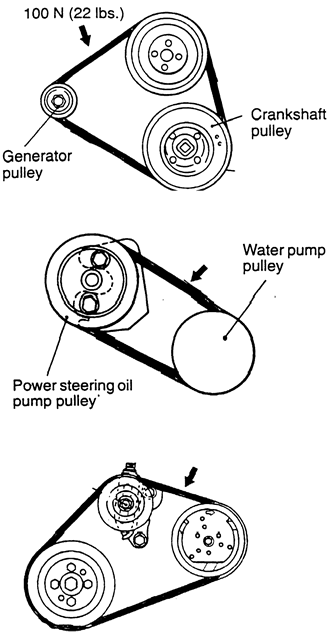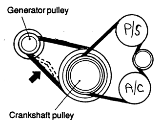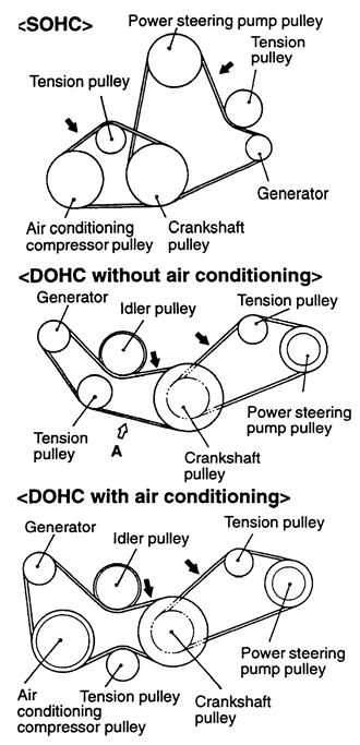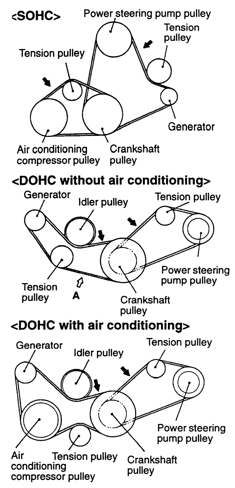 | Fig. 7: Fig. 4 Accessory drive belt routing — Mitsubishi