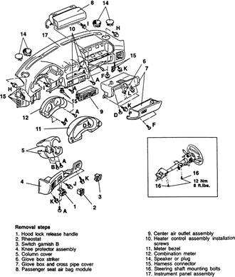 | Fig. 1: Exploded view of the instrument panel and related components — Mitsubishi 3000GT |