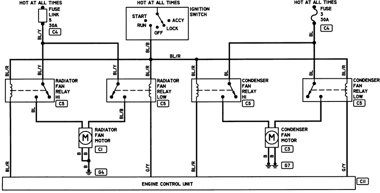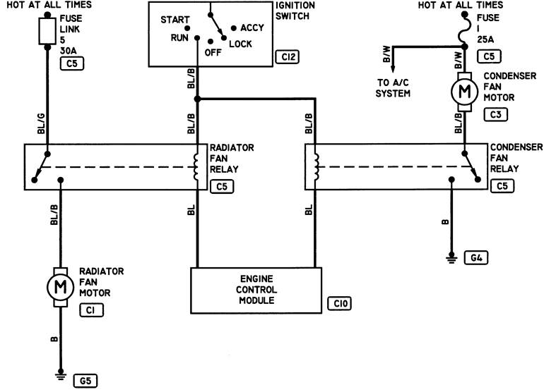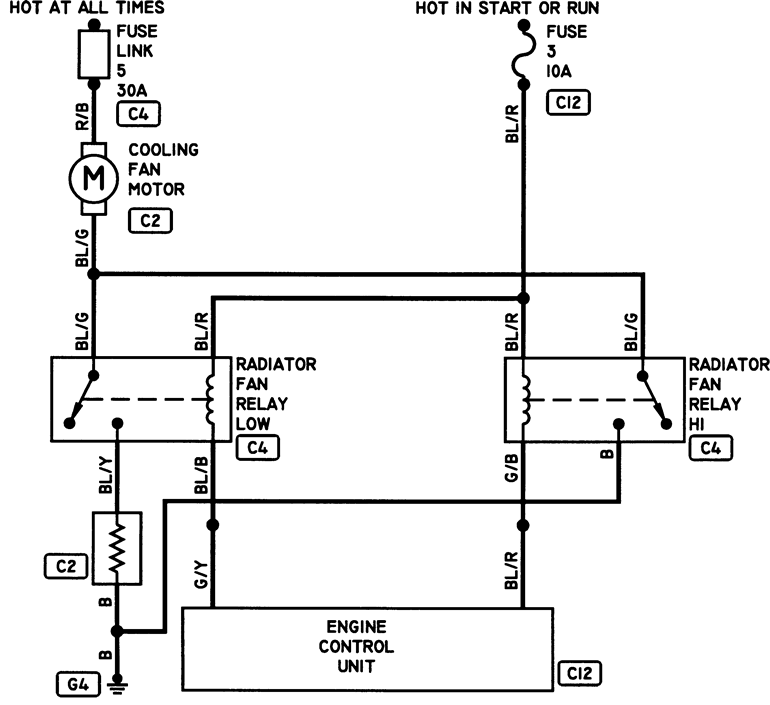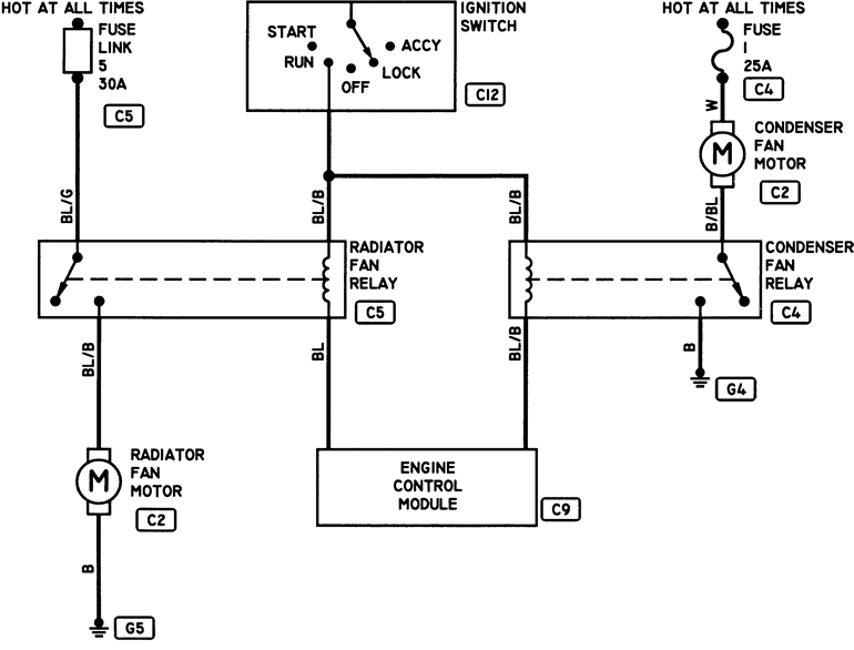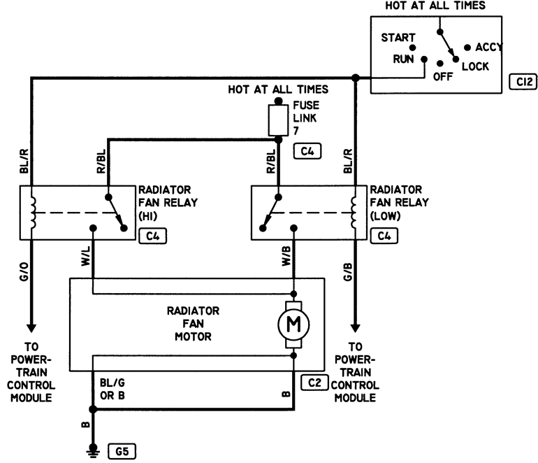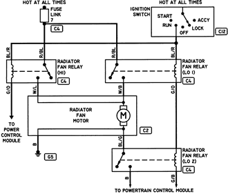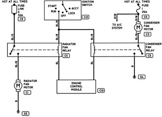 If the cooling fan functions properly during this test, proceed to the cooling fan relay test.